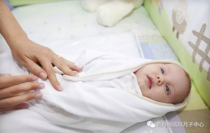 把寶寶用包被包裹起來,讓寶寶有安全感;
